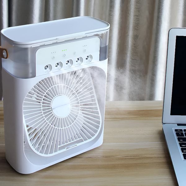 Acest aparat portabil de aer condiționat combină un ventilator, aer condiționat, difuzor de arome, lumină de noapte și umidificator într-un singur dispozitiv, oferind confort pe tot parcursul anului în orice spațiu.