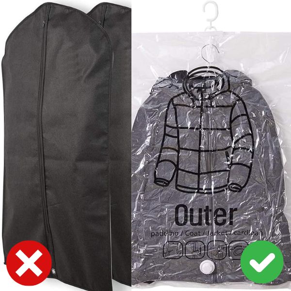 Evitați să deschideți pungile pentru a găsi hainele. Designul transparent al VACUHANG vă permite să vedeți ce este înăuntru fără să le deschideți. Această caracteristică, combinată cu cârligele pentru umerașe, permite un acces rapid și convenabil la articolele dvs. depozitate.