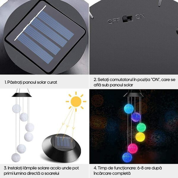 Timp de încărcare: 6-8 ore sub lumina directă a soarelui