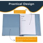 Include 10 plicuri extensibile (6 de dimensiune completă, 4 jumătate de dimensiune) pentru a ține până la 10 foi fiecare.
