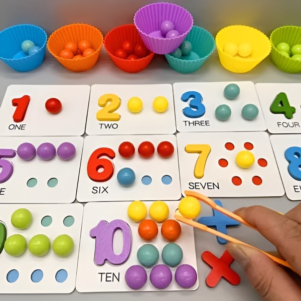 Mărgelele colorate, texturile și instrumentele stimulează văzul și simțul tactil pentru a aprofunda înțelegerea matematicii timpurii.