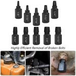 Setul extractor pentru șuruburi, 10 piese, oferă o gamă completă de dimensiuni, asigurându-te că ai unealta potrivită pentru fiecare sarcină de extragere.