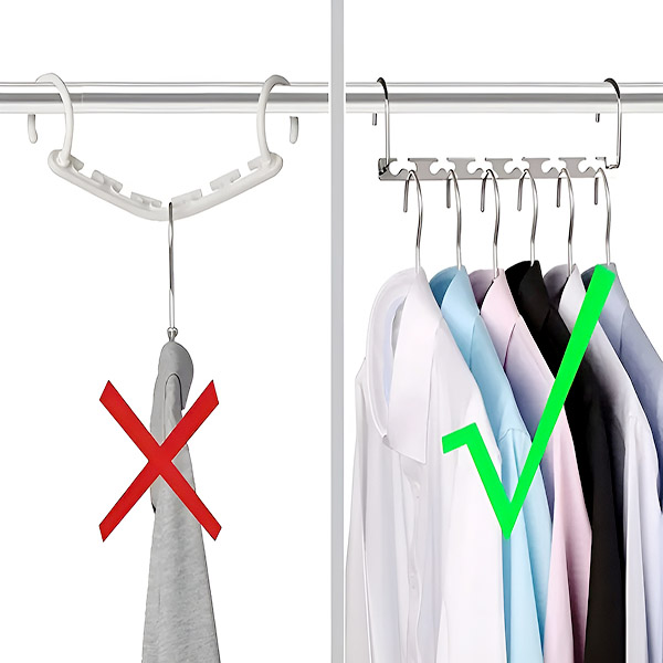 Umerașul nostru pentru haine oferă o soluție simplă pentru a vă păstra hainele aranjate îngrijit, fără cute. Acesta asigură că fiecare articol are suficient spațiu, prevenind formarea cutelor nedorite.