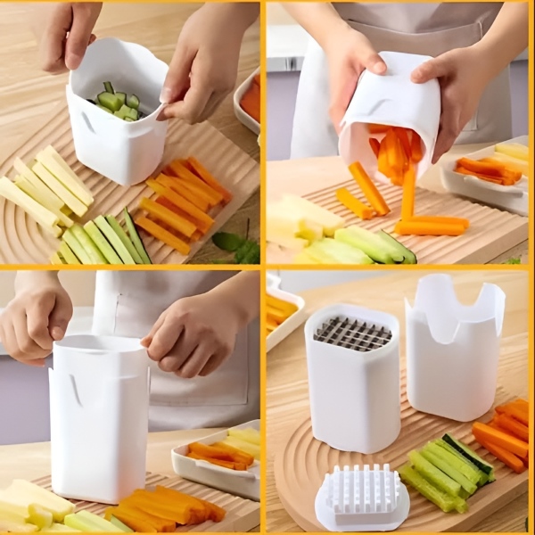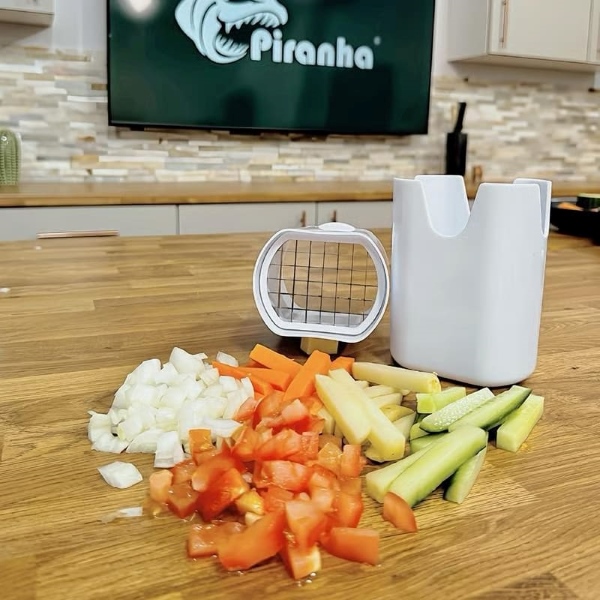 Ustensila de bucătărie CHOPZY nu este doar pentru cartofi prăjiți; este un tocător de legume versatil care poate fi folosit pentru o varietate de ingrediente precum morcovi, castraveți și ceapă, făcând pregătirea meselor mai ușoară.